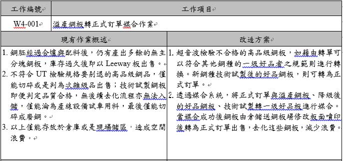 溢產鋼板透過生產計劃處進行訂單媒合作業,減少正式訂單生產以減少能耗。
