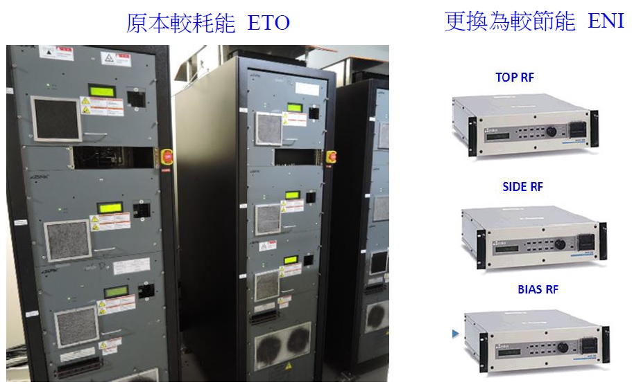改用高效率RF generator - ENI,取代原高耗電ETO generator。 ENI retrofit工程共1台,運轉省電可達52.5%。