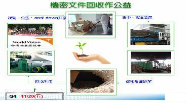 1)為貫徹Green 回收理念及有效運用空間概念,推行廠區機密文件回收從原焚毀改成溶解再製。