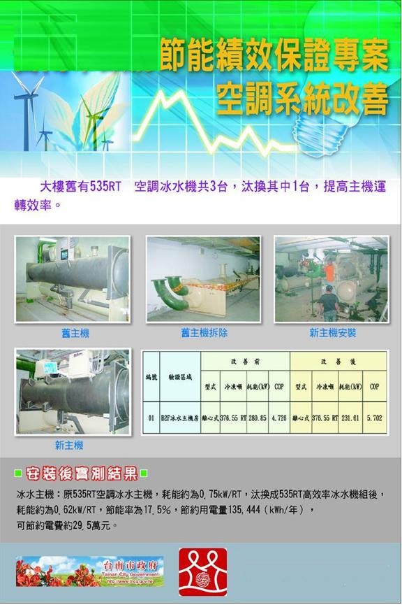 該公家機關為空調節能,更新535RT高效率冰水主機1台。