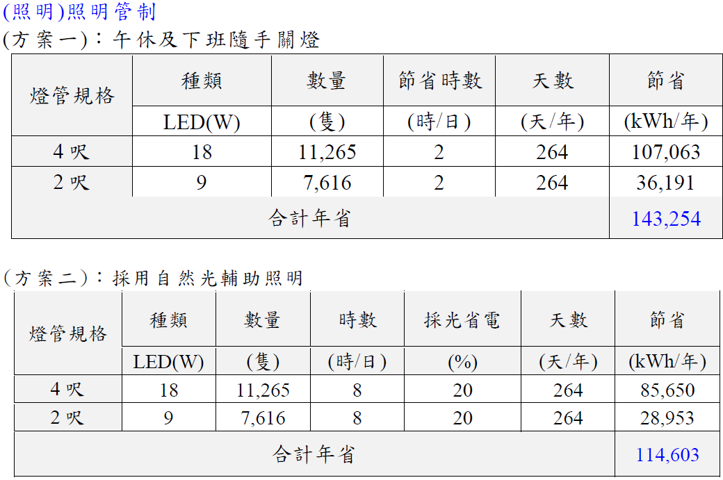 節省度數=143,254+114,603=257,857度/年