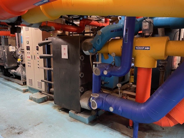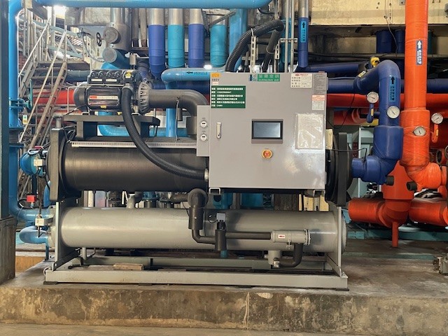 - 提升整體空調系統的效率及強化智慧化管理,將既有兩台使用年限超過15年的 120 RT 螺旋式冰水主機及一台舊式滷水系統,分別汰換為120RT高效率水冷變頻磁懸浮離心式變頻冰水主機及螺旋式冰水主機,提升能源使用效率,專案節能率達45.8%。