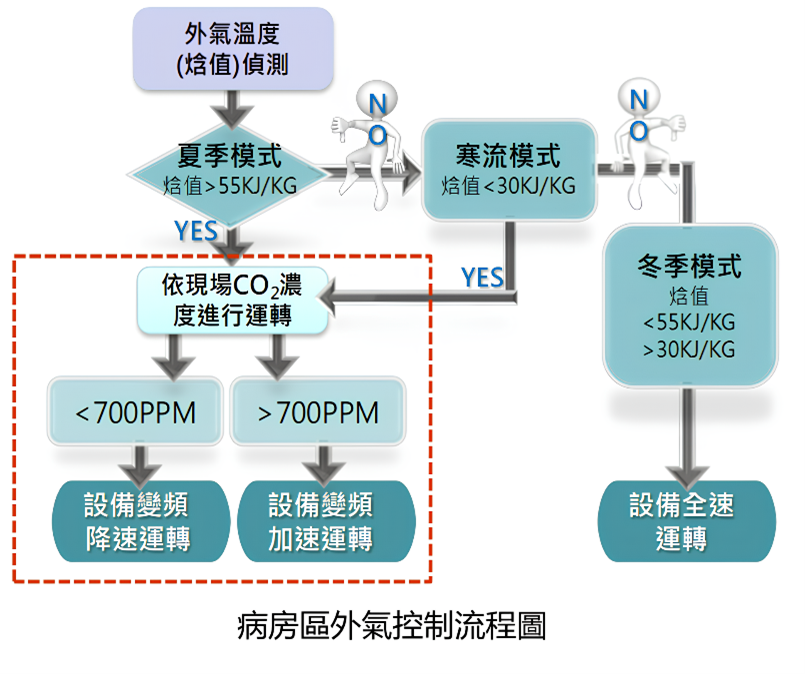 (二)病房區外氣節能控制病房區空調系統導入智能控制,透過季節變化引入外氣節能措施