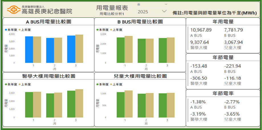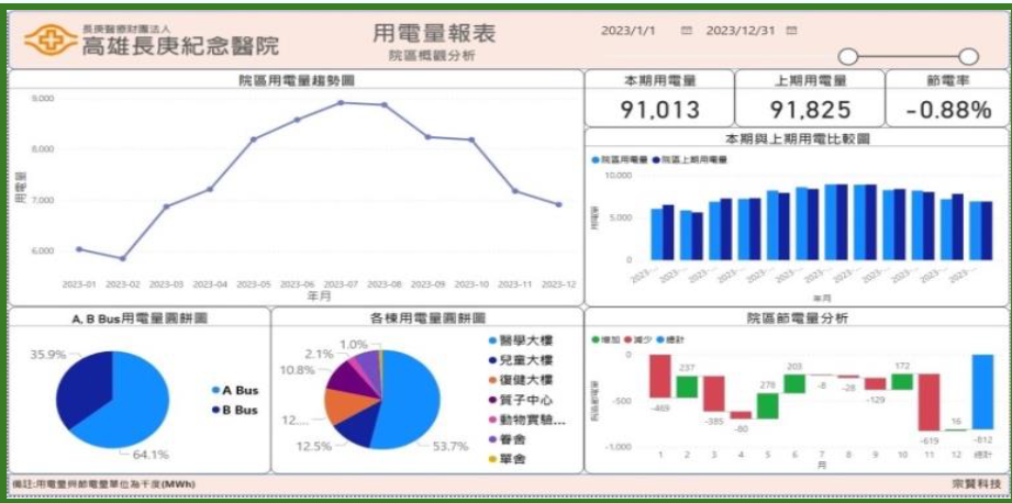 - 透過中央監控系統(DCS)智能化整合全院電力設備及系統用電,將數據進行管理及分析,有效管理能源效能。