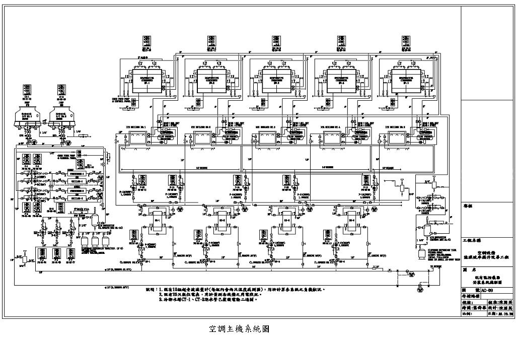 3.冰水機之冰水、冷卻水泵,依冰水機負載按比例在45-60Hz間運轉;冷卻水塔CT-1~CT-2風扇15Hp共2台,以濕球溫度為基礎調節轉速。