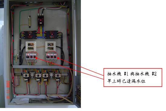 該校為能降低抽水用電採取以下之措施: 1.加大水塔容量,足供全天所需耗水量。 2.利用夜間離峰價廉電力,強制抽水至滿水位控制。