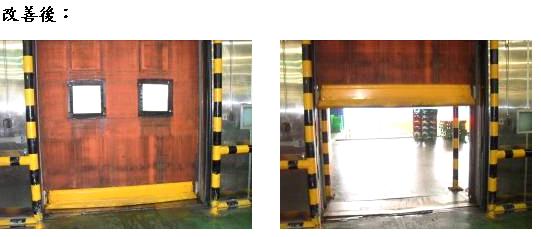 該公司改善後,裝設快速捲門取代垂吊門簾,於空箱進出時,電動門常開,但以快速門簾開關於空箱進出前後,減少冷氣外洩的機會。
