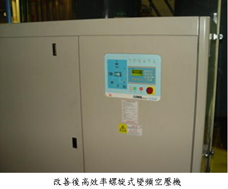 該廠經更新為高效率變頻螺旋式空壓機後,提昇空壓機運轉效率,每年約可節省42,498度電。