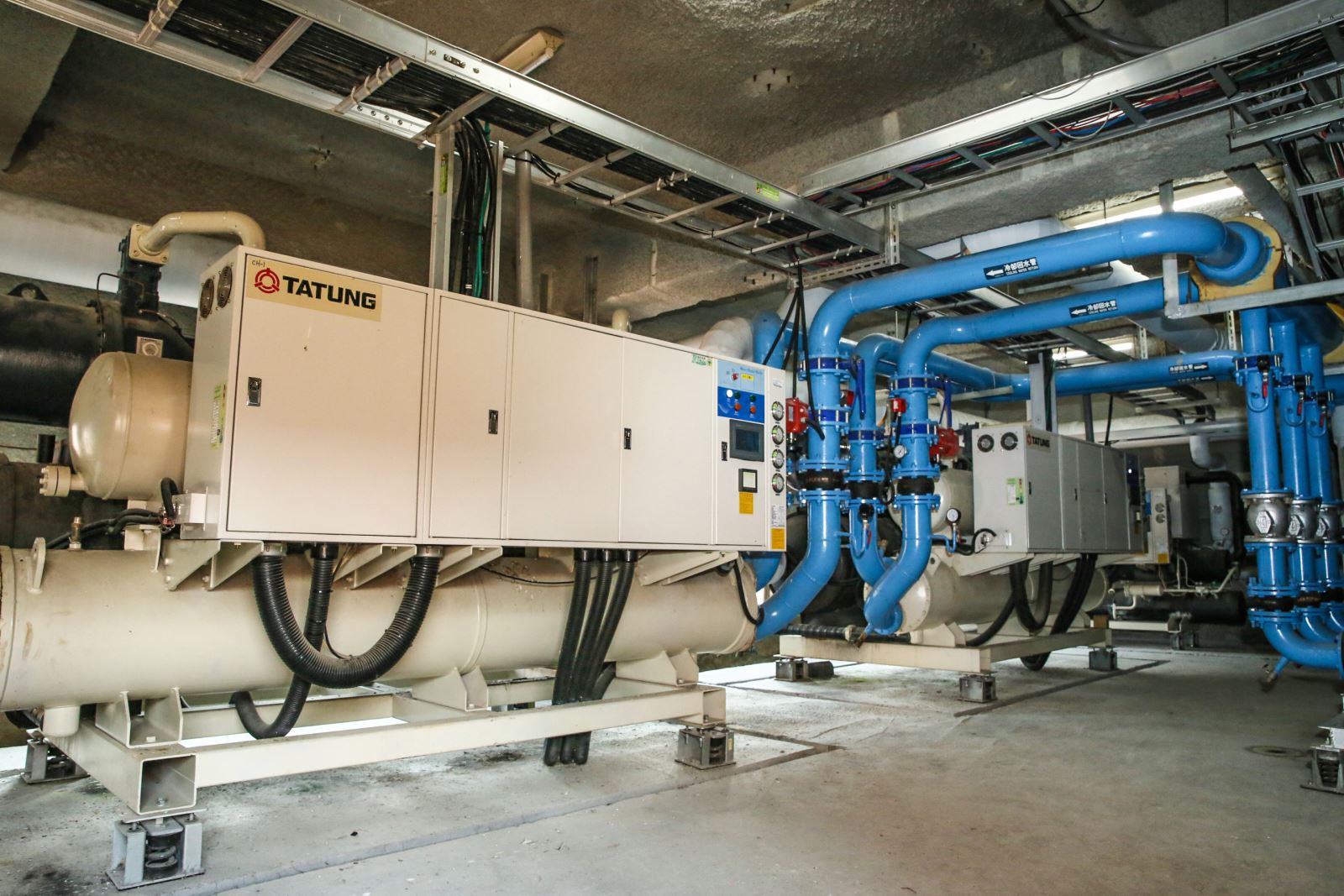 汰換老舊冰機,調整最佳化運轉模式,進行主機及變頻水泵、水塔連鎖起停控制,可大幅降低空調用電。