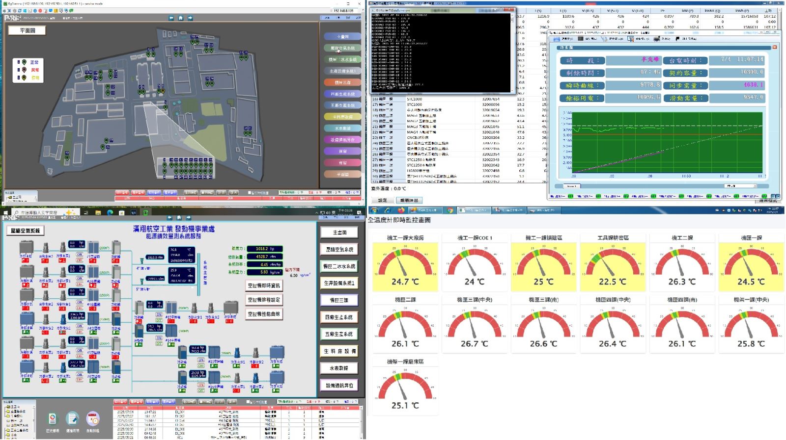 建置主要耗能設備監控系統,具備完整能源管理系統架構。所有監控系統由廠內工程師自主維護管理,即時掌握其運轉狀態,記錄分析各區域時段的能源需求,探討深度節能可行性,並自113年開始蒐集數據,預計115年完成AI預測模型,走向智慧化管理,達到更深層節能。