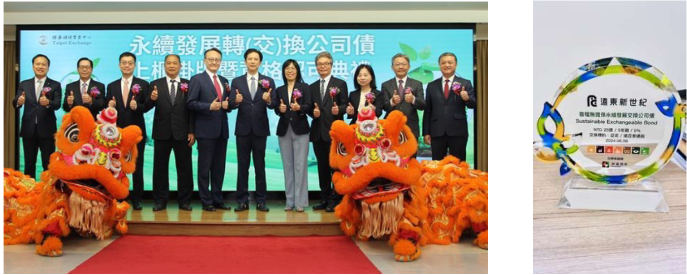 - 2024年8月,母公司遠東新世紀為響應政府永續政策,籌集亞東石化類P8改造案的資金,發行國內首批永續發展交換債券,發行金額為新台幣25億元,期間5年,由凱基證券主辦承銷。